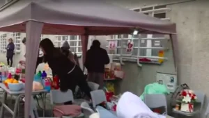 Ispred zgrade gimnazije su postavljeni stolovi sa hranom i pićem, a građani od juče donose donacije učenicima Pete beogradske gimnazije u blokadi, objavio je N1.