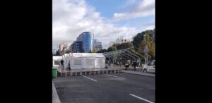 Nekoliko novih belih šatora postavljeno je danas u već postojeće šatorsko naselje ispred Doma narodne skupštine i sada zauzimaju obe saobraćajne trake.