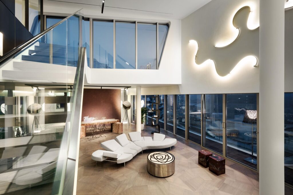 Koliko su tu luksuzni stanovi ne možete ni zamisliti. To su kao kuće u zgradi i to na dva, pa čak i tri nivoa. Jedan takav luksuzni apartman opremila je i poznata arhitektica Zaha Hadid, a sam pogled na njega izaziva divljenje.